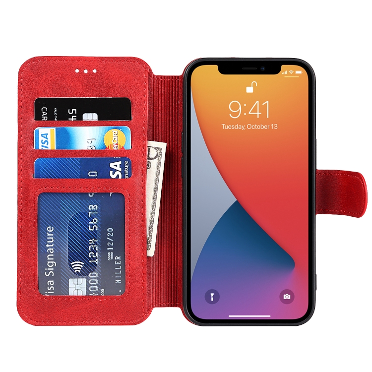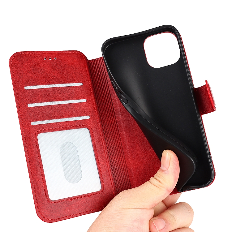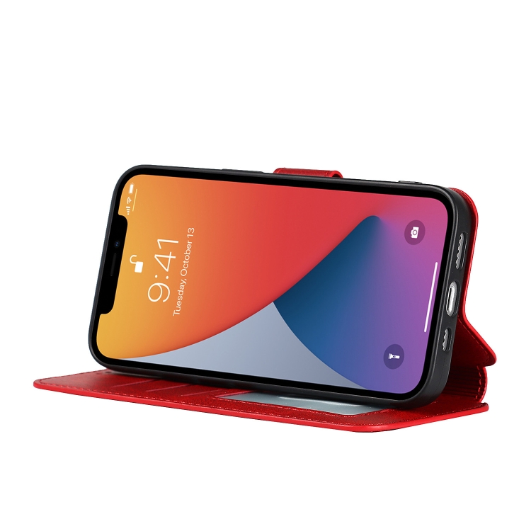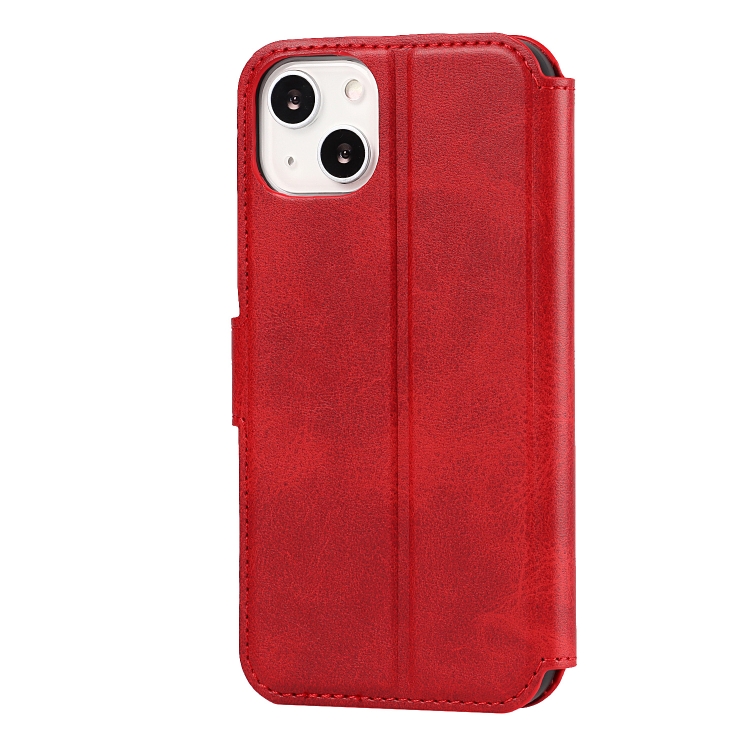 Funda para iPhone 13 Mini Cuero Pu + TPU Ranuras Tarjetas Soporte Marco Fotos Billetera (Rojo)