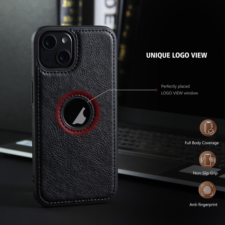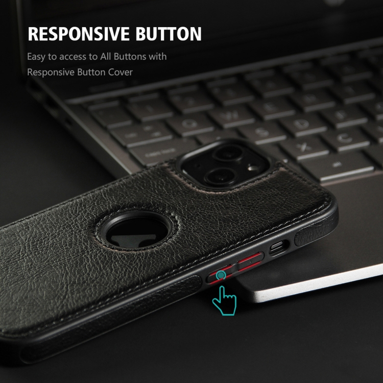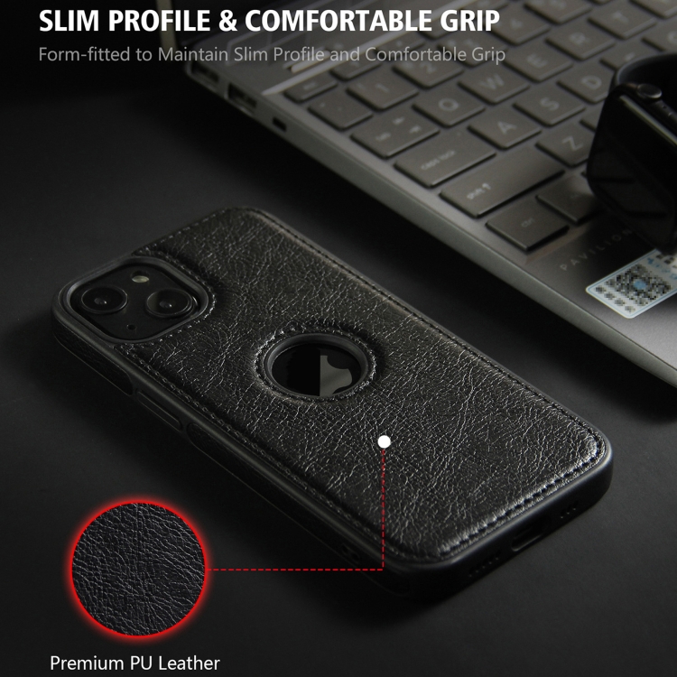 Funda de Teléfono iPhone 13 Mini con Costuras Textura de Cuero (Negro)