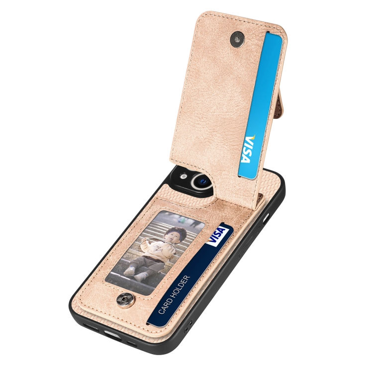 Funda de teléfono iPhone 13 Mini con cremallera vertical de fibra de carbono (Caqui)