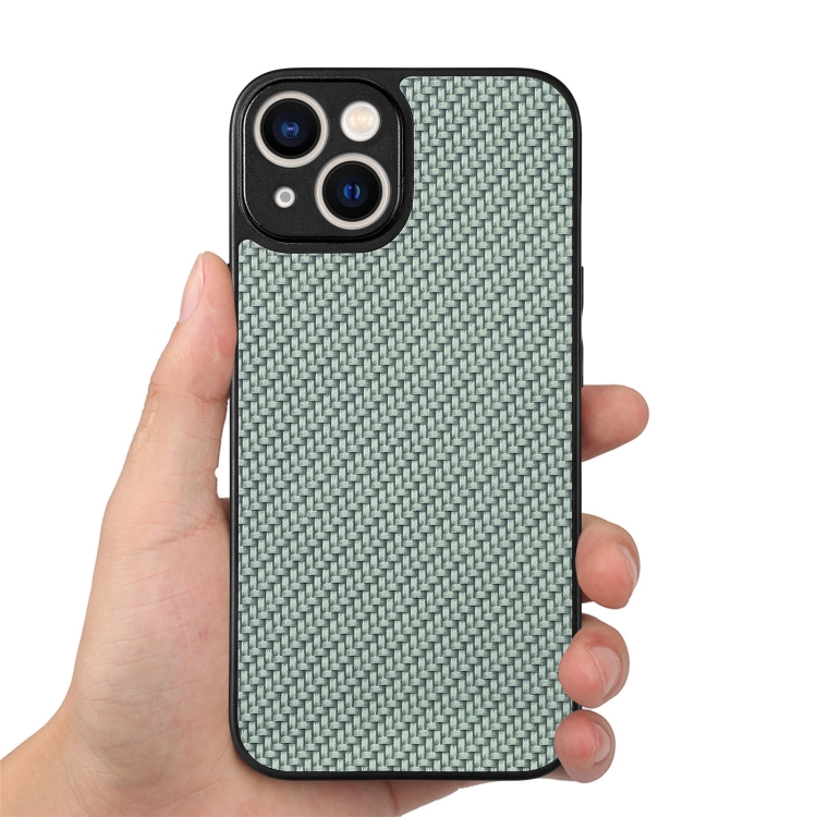 Funda de teléfono para iPhone 13 Mini con tapa Trasera de cuero y textura de fibra de carbono (Verde)