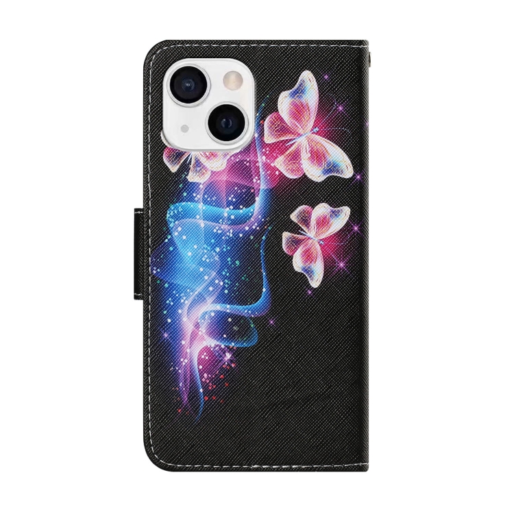 Funda de Teléfono iPhone 13 Mini Cuero Patrón Dibujo Tres Mariposas Fluorescentes