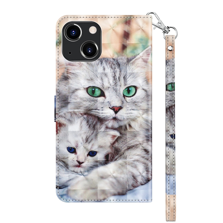Funda de Teléfono para iPhone 13 Mini Cuero Pintado En 3D Dos Gatos Amorosos