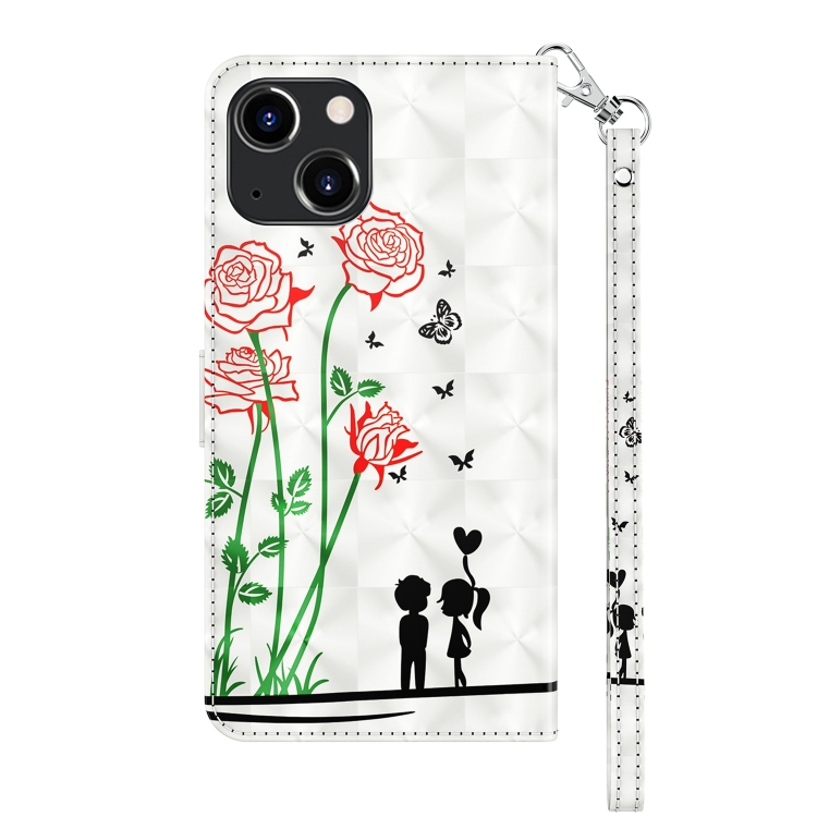 Funda de teléfono iPhone 13 Mini cuero pintado en 3D pareja (Rosa)