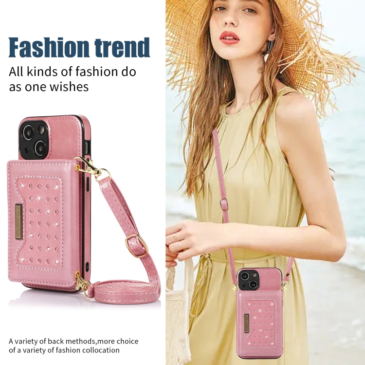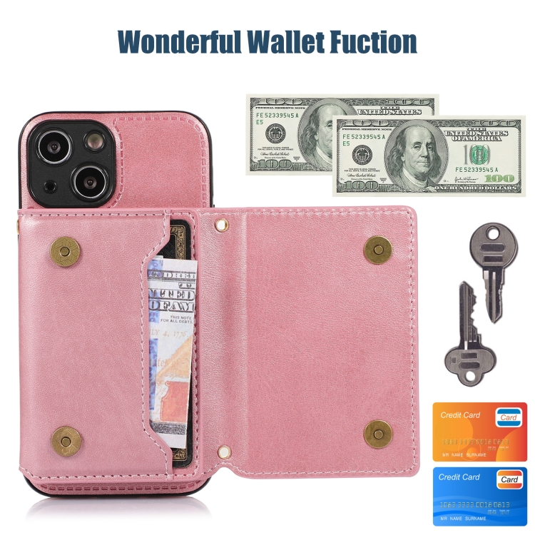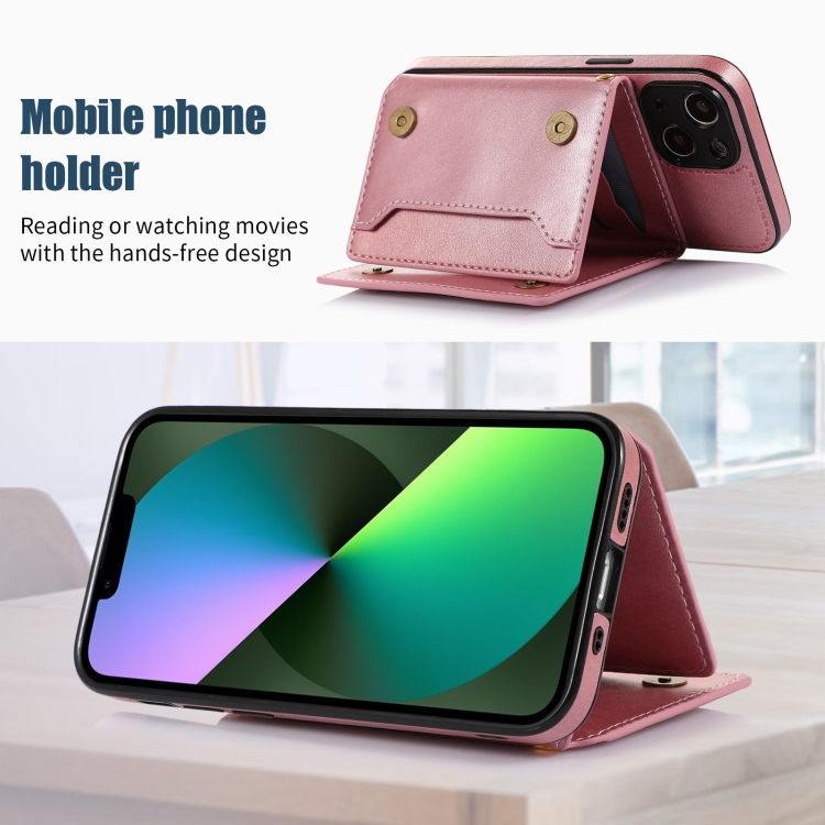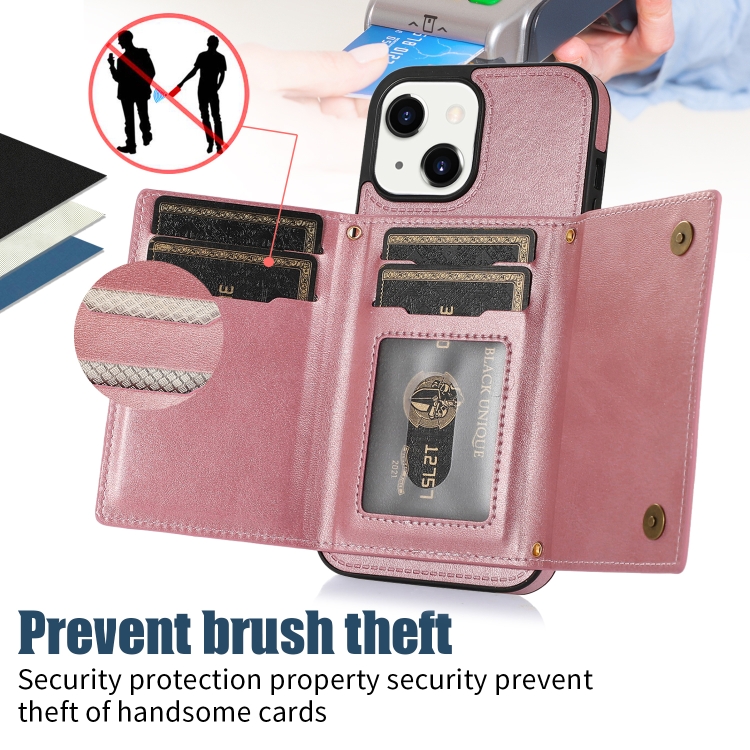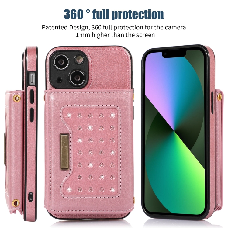 Funda de Teléfono iPhone 13 Mini Cuero Rfid Tres Pliegues con Cordón (Oro Rosa)