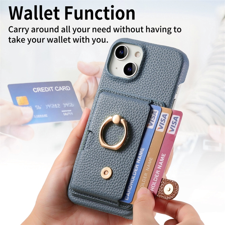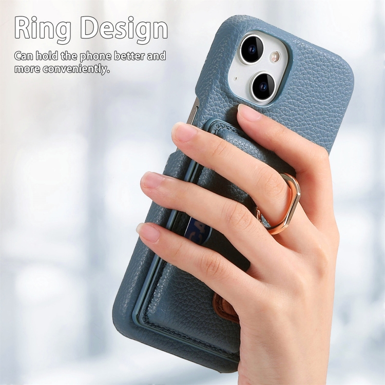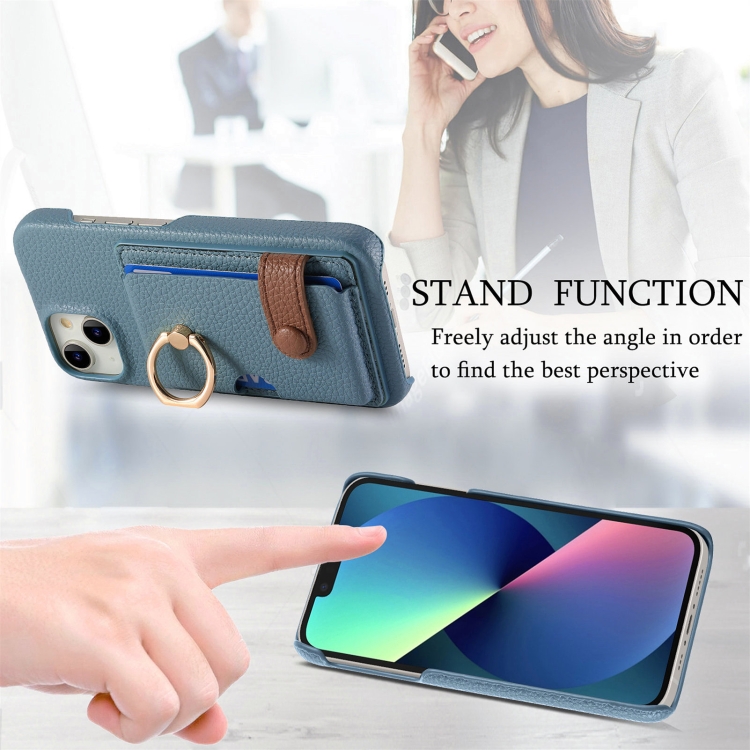 Funda para Teléfono iPhone 13 Mini Borde de Aceite Cuero Litchi Parte Posterior de Tarjeta (Azul Claro)