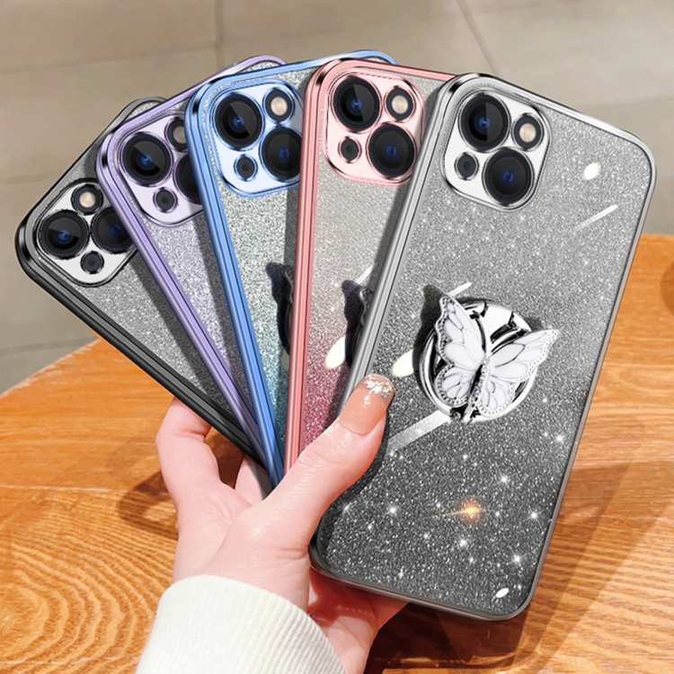 Funda para Teléfono TPU iPhone 13 Mini con Soporte de Mariposa y Brillo Degradado (Rosa)