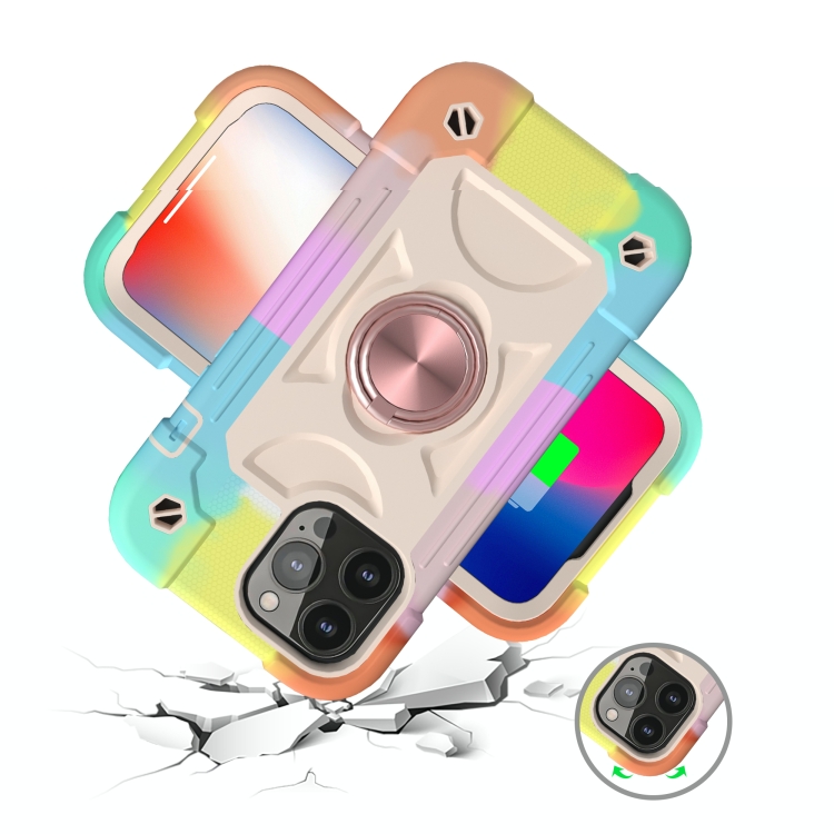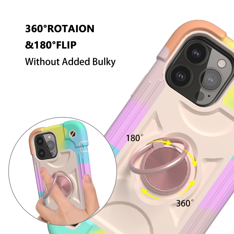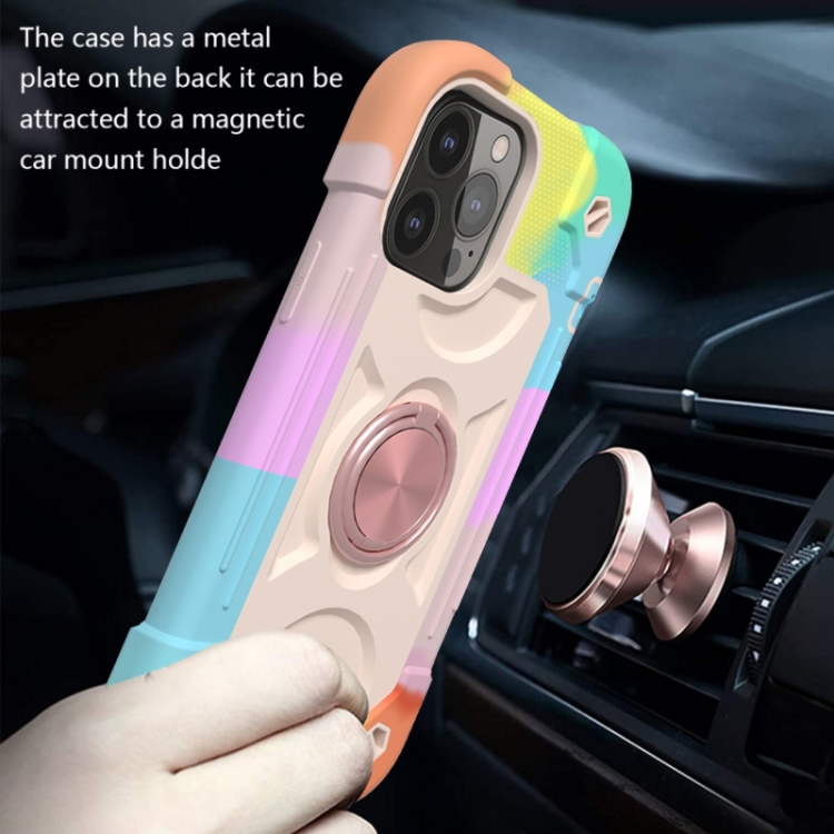 Funda Protectora de Silicona para iPhone 13 Mini con Soporte de Doble Anillo (Oro Rosa)