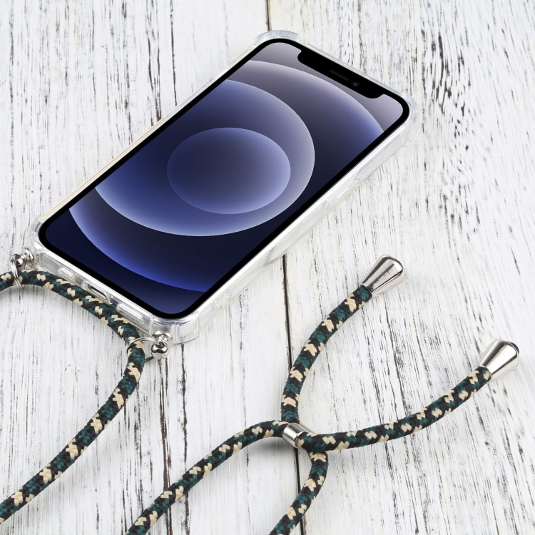 Funda Protectora TPU para iPhone 13 Mini a Prueba de Golpes con Cordón (Negro Verde Dorado)