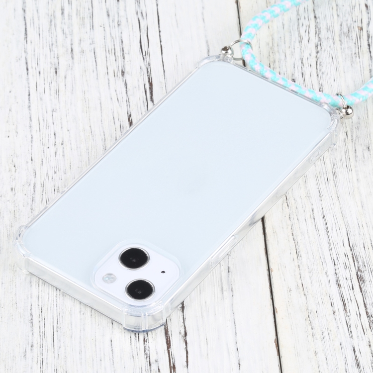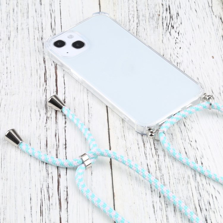 Funda Protectora TPU para iPhone 13 Mini a Prueba de Golpes con Cordón (Verde Menta Blanco)