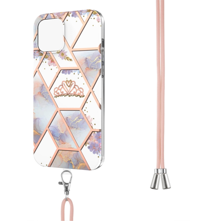 Funda para iPhone 13 Mini TPU Galvanoplastia Empalme Mármol Patrón de Flores a Prueba de Golpes con Cordón (Corona Imperial)