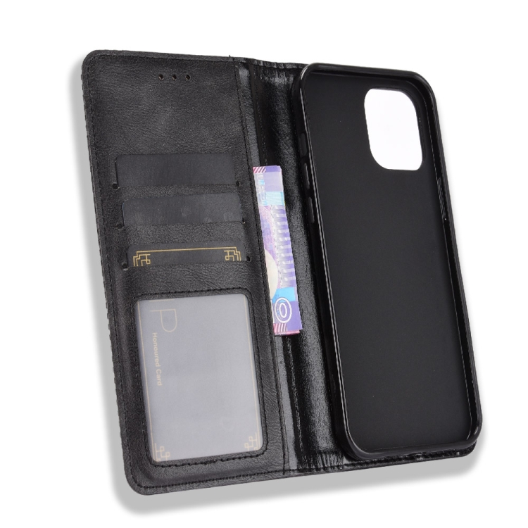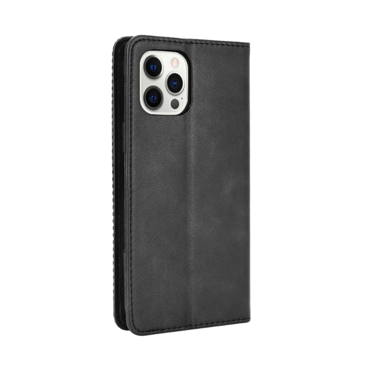 Funda para iPhone 13 Mini Cuero Hebilla Magnética Patrón Retro Tapa Horizontal Soporte Ranura Tarjeta Billetera (Negro)
