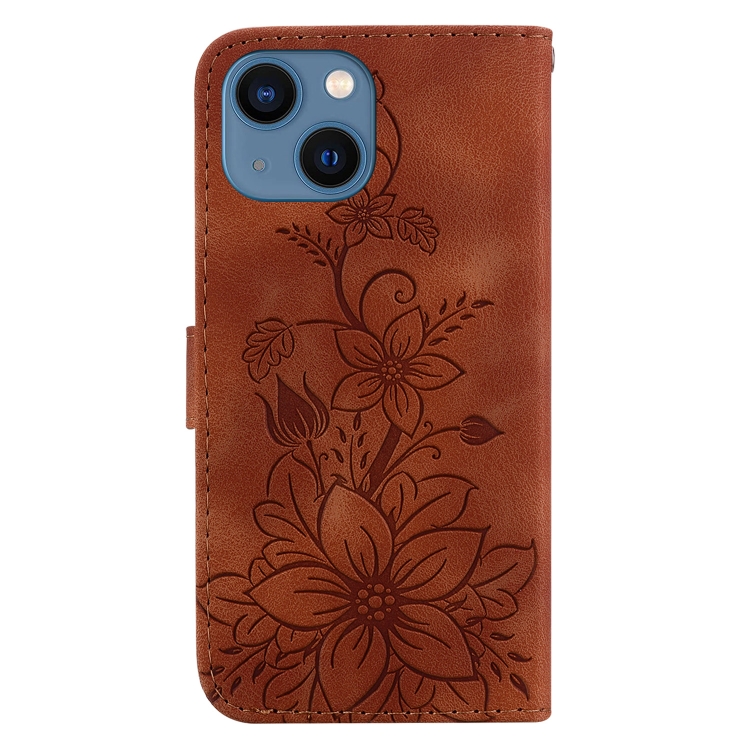 Funda para iPhone 13 Mini Lily Cuero En Relieve para Teléfono (Marrón)