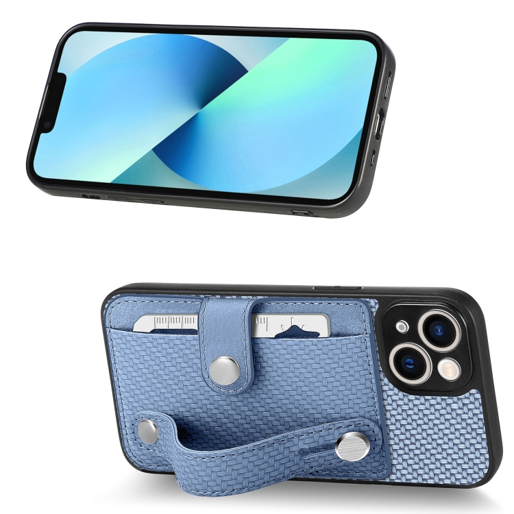 Funda para iPhone 13 Mini Muñequera Kickstand Tarjeta Monedero Contraportada Caja con Herramienta Cuchillo (Azul)