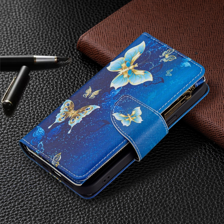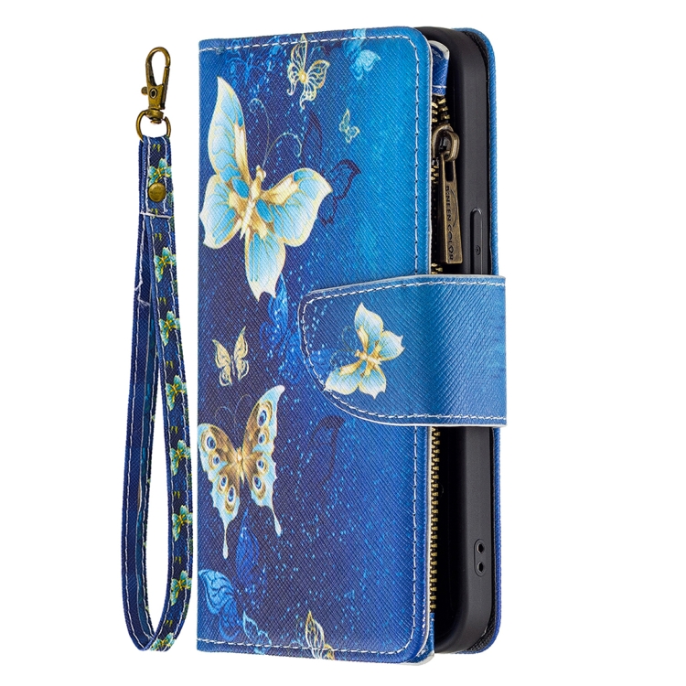 Funda de Cuero para iPhone 13 Mini con Tapa Horizontal, Soporte, Ranuras para Tarjetas y Billetera (Mariposa Dorada)