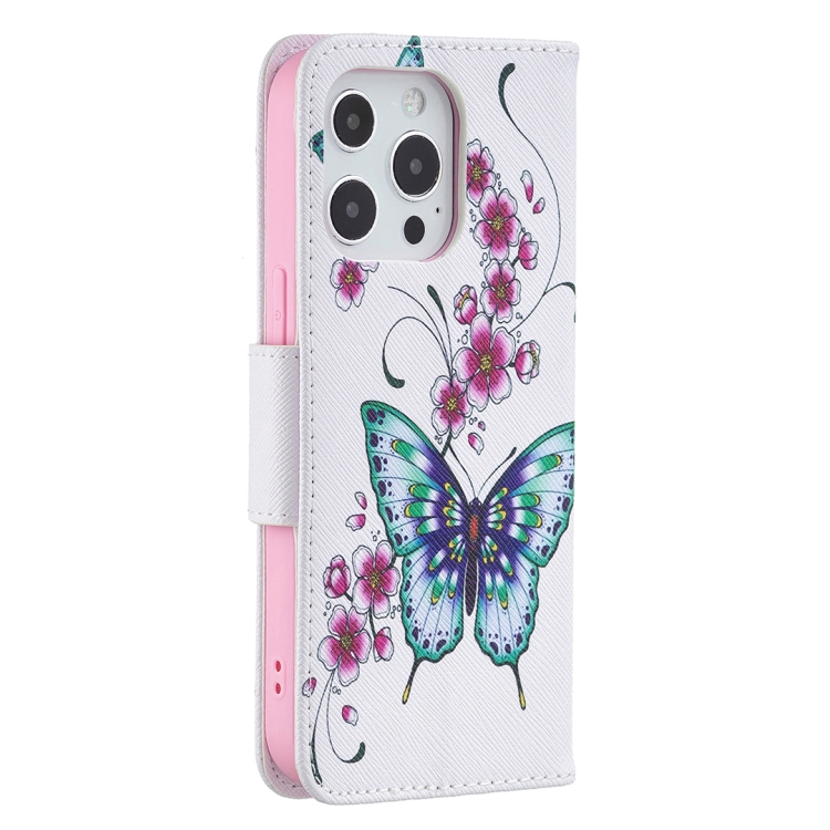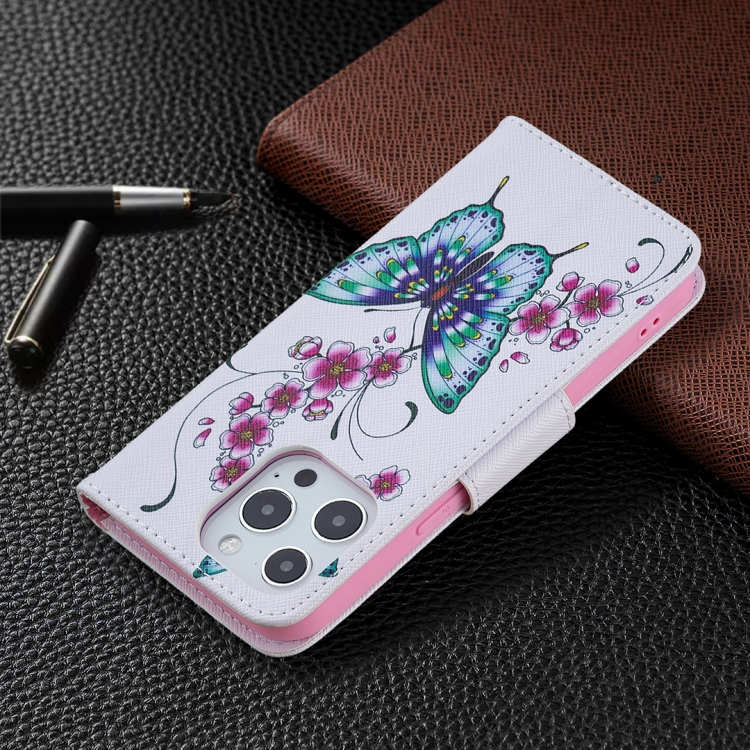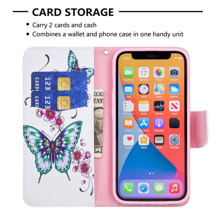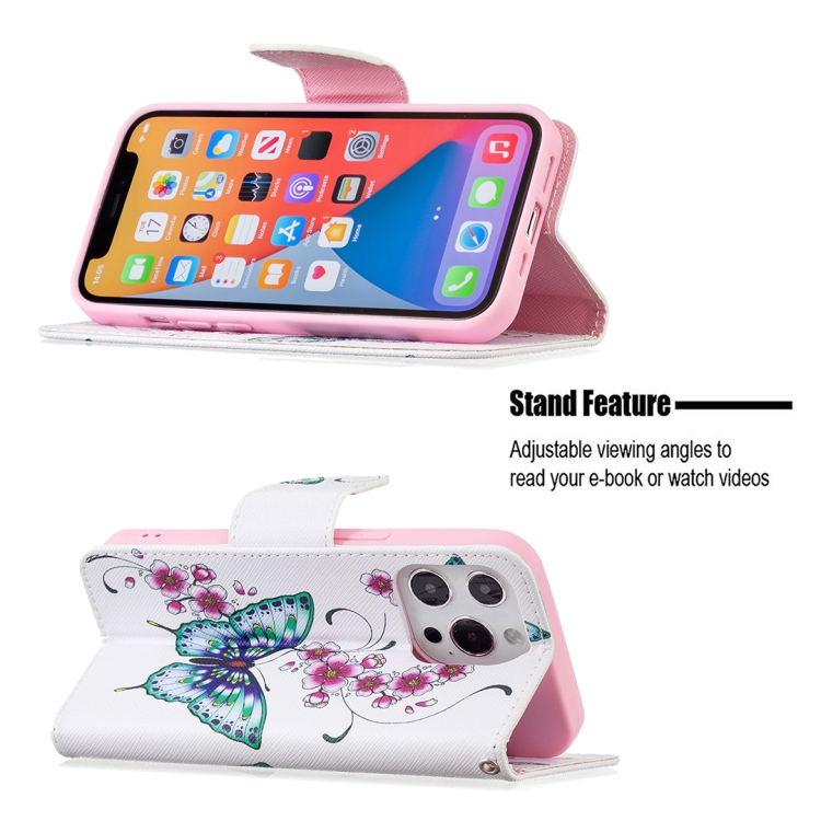 Estuche de Cuero para iPhone 13 Mini con Tapa Horizontal Soporte y Ranuras para Tarjetas (Flor de Durazno y Mariposa)