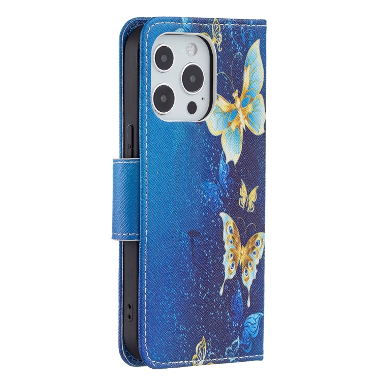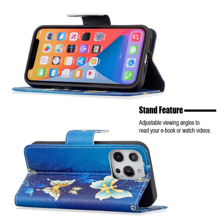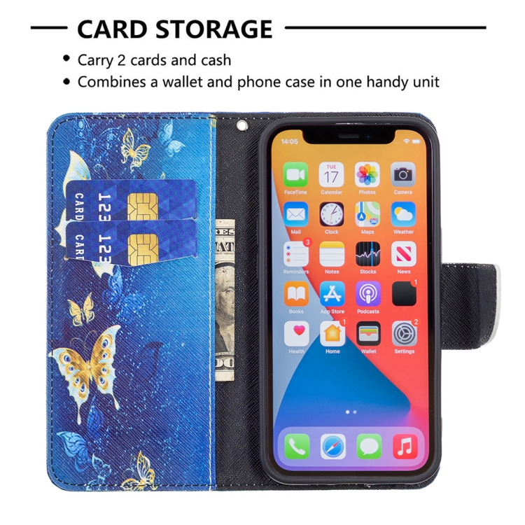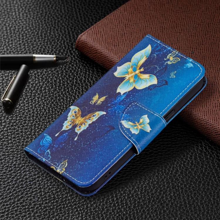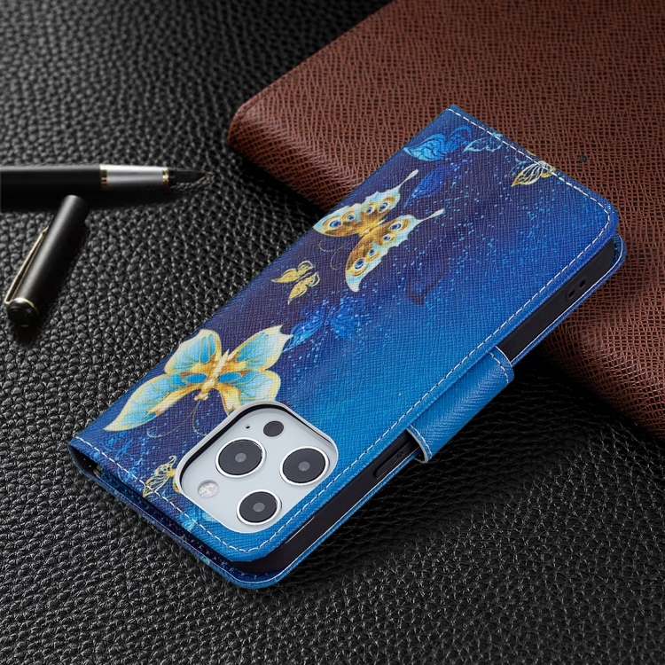 Funda de Cuero iPhone 13 Mini Patrón Dibujo a Color Tapa Horizontal Soporte Ranuras Tarjetas Billetera (Mariposa Dorada)