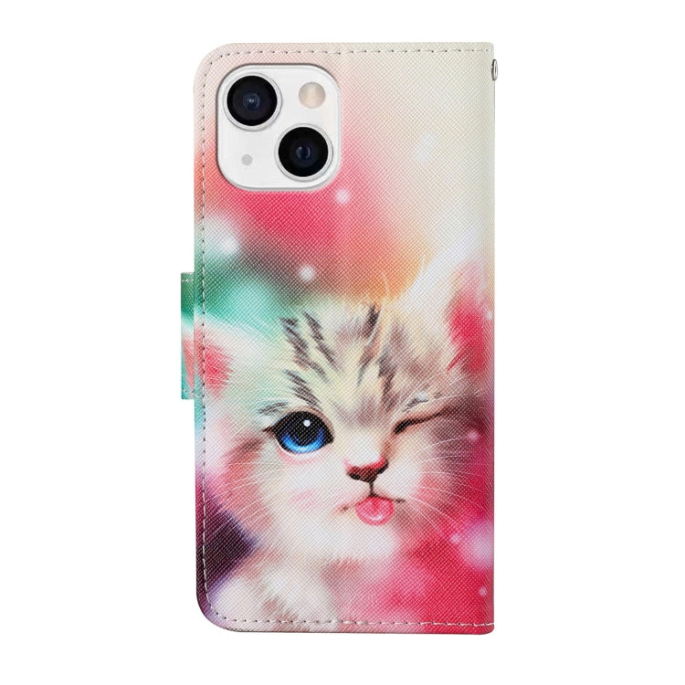Funda de Cuero para iPhone 13 Mini con Tapa Horizontal y Patrón de Dibujo Coloreado (Squint Cat)