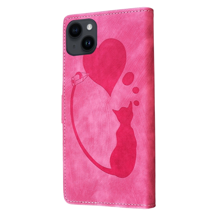 Funda de Cuero para iPhone 13 Mini Pen Heart Cat en Relieve (Rosa)