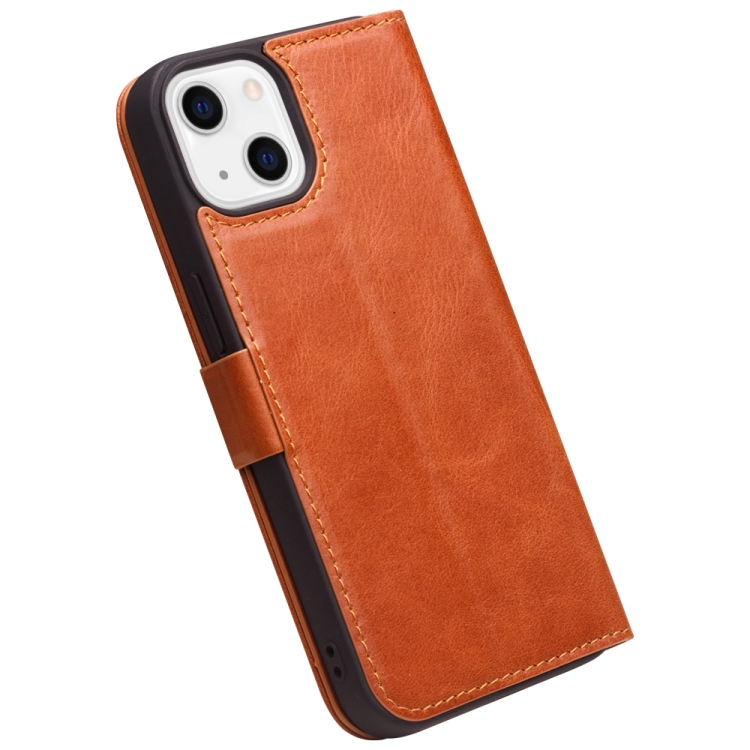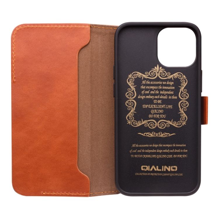 Funda de Cuero Qialino para iPhone 13 Mini con Hebilla Magnética (Marrón)