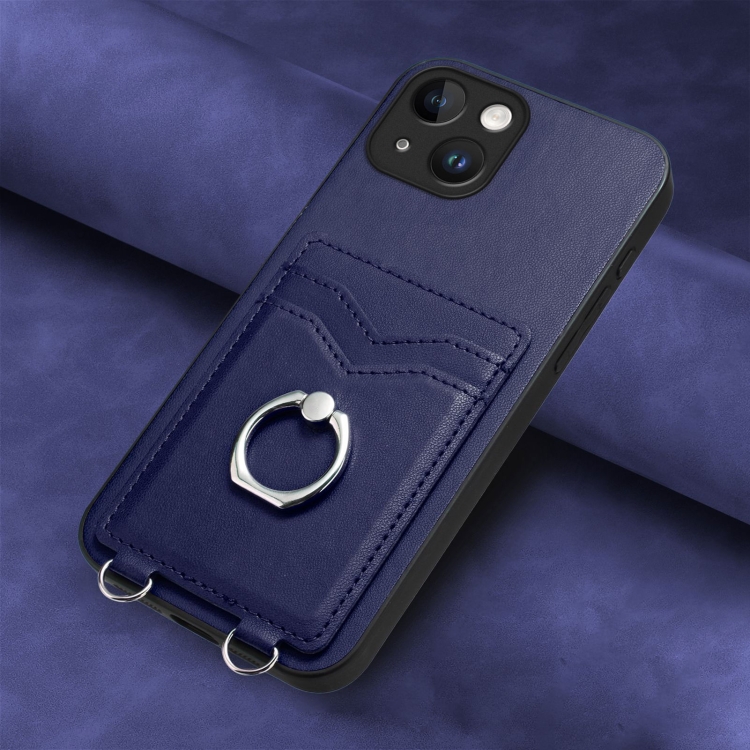 Estuche para Teléfono iPhone 13 Mini R20 con Soporte para Tarjeta y Anillo (Azul)