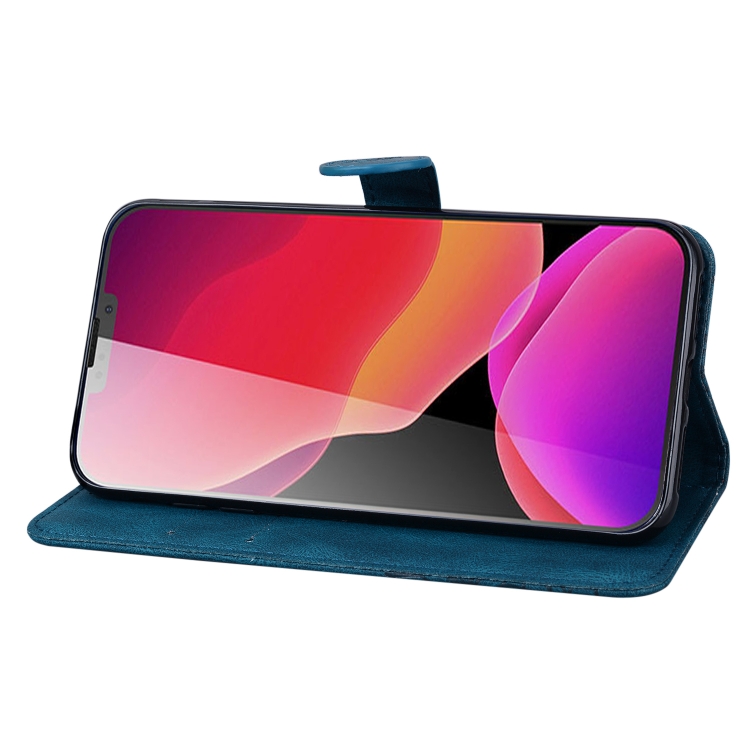 Funda para iPhone 13 Mini Retro Skin Feel Butterflies Cuero con Tapa Horizontal En Relieve Soporte Ranuras Tarjetas Billetera (Azul)