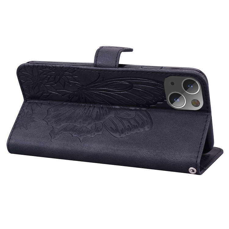 Funda de Cuero iPhone 13 Mini Retro Skin Feel Butterflies con Tapa Horizontal Soporte y Ranuras para Tarjetas (Negro)