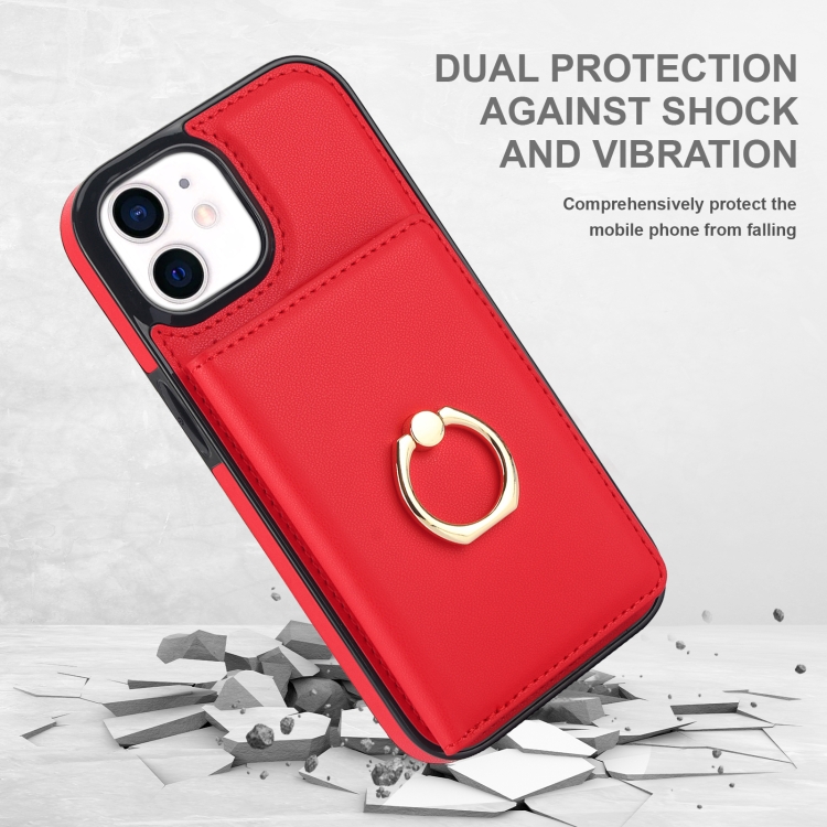 Funda para Teléfono iPhone 13 Mini Soporte para Anillo Tarjeta Antirrobo (Rojo)
