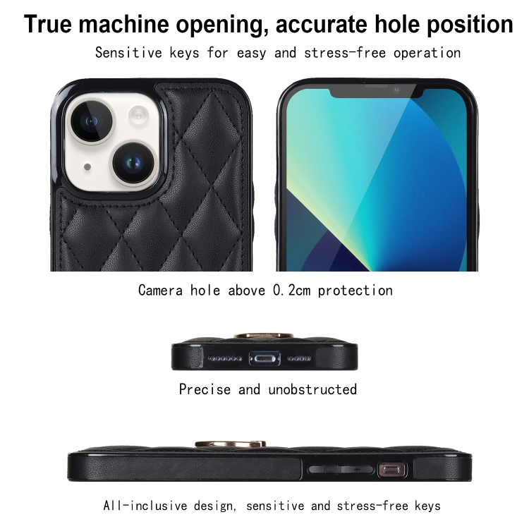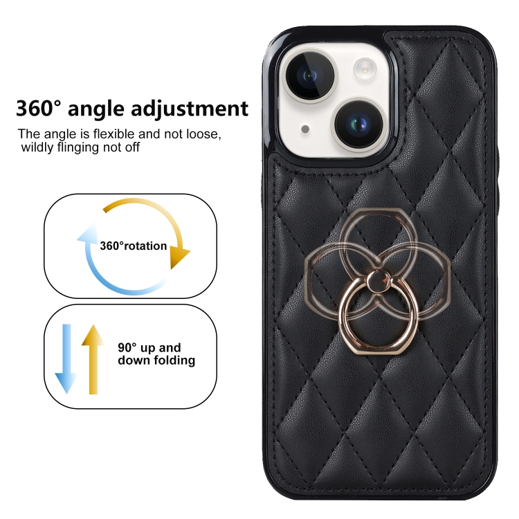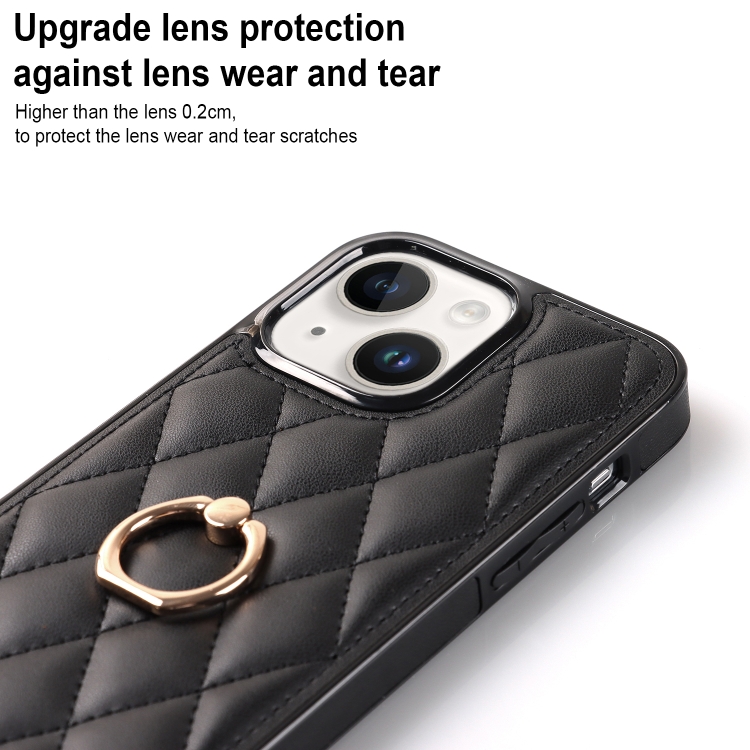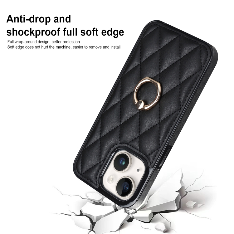 Funda para iPhone 13 Mini Rhombic PU Cuero con Soporte para Anillo (Negro)