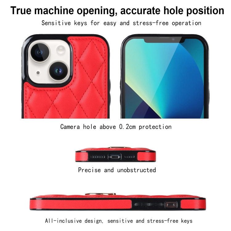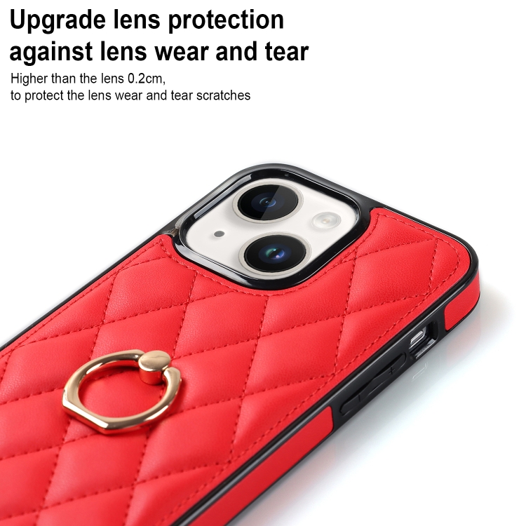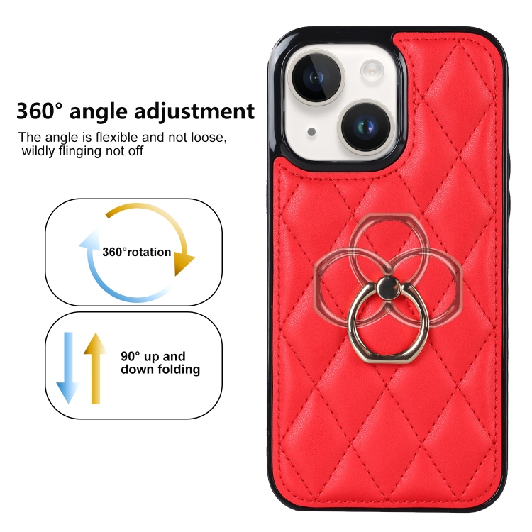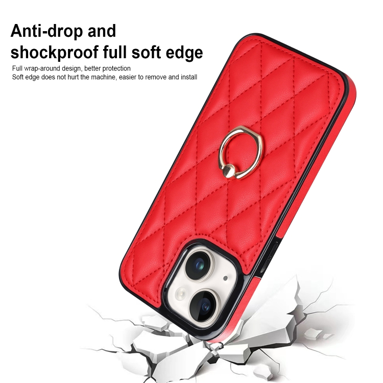 Funda para iPhone 13 Mini Rhombic PU Cuero con Soporte para Anillo (Rojo)