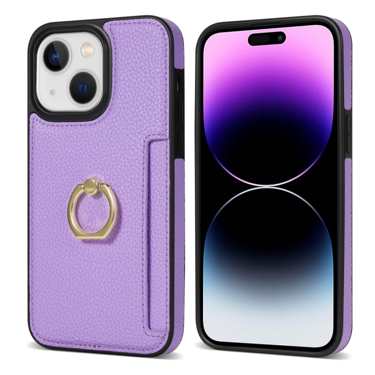 Funda Trasera para iPhone 13 Mini Ring Card Litchi Cuero (Púrpura)