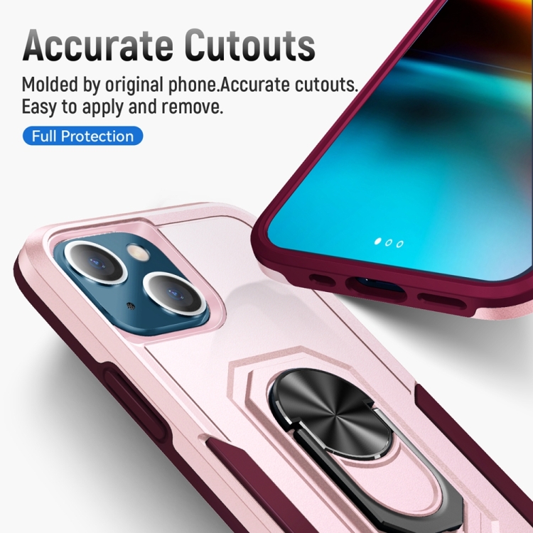 Funda para Teléfono iPhone 13 Mini Ring Kickstand a Prueba de Golpes (Rosa)