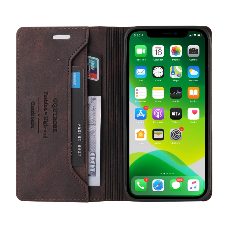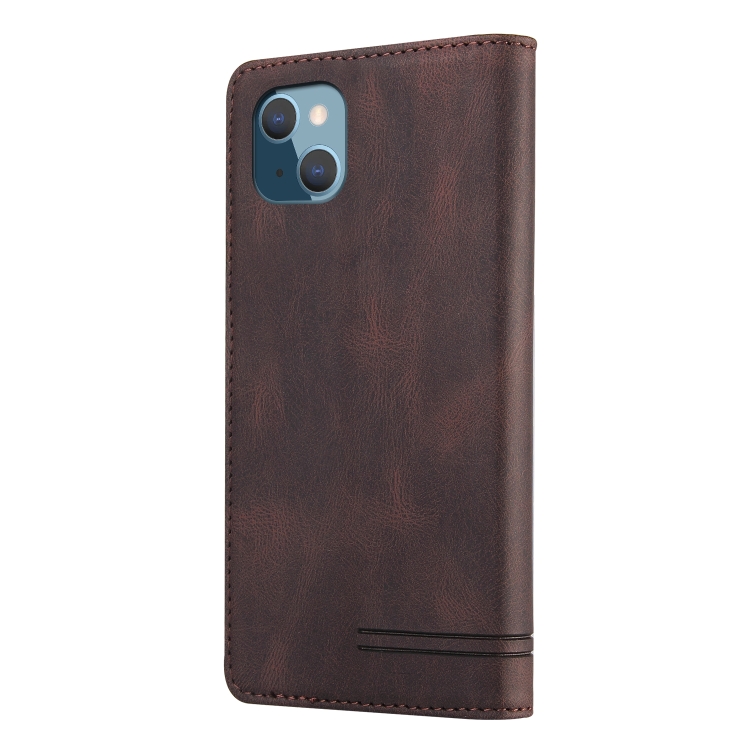 Funda de Cuero Skin Feel para iPhone 13 Mini con Tapa Horizontal, Cepillo Antirrobo, Soporte, Ranuras para Tarjetas y Billetera (Marrón)