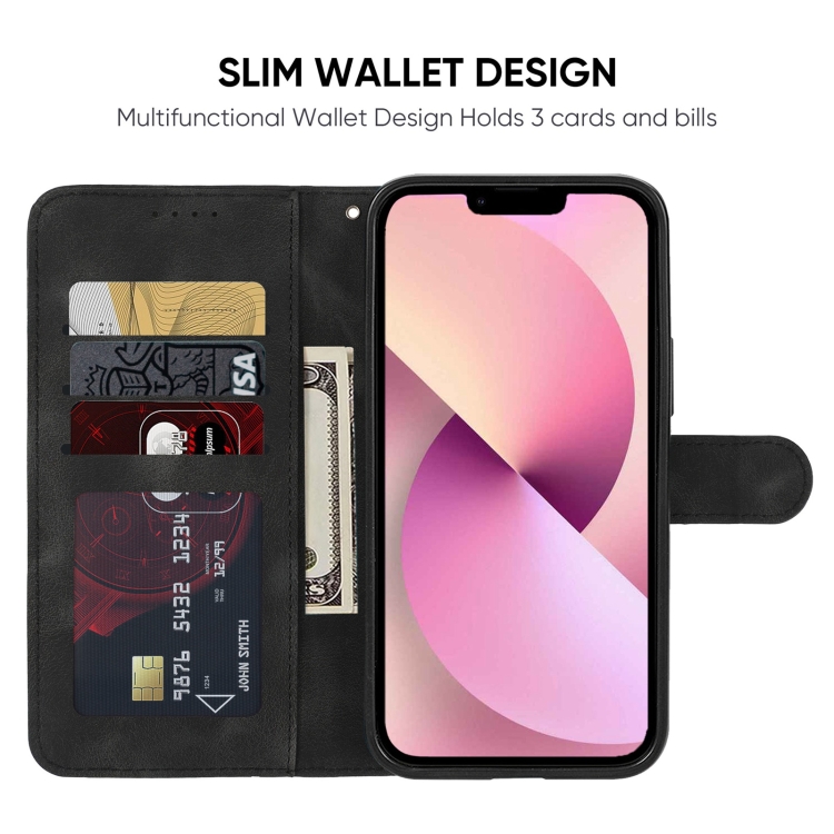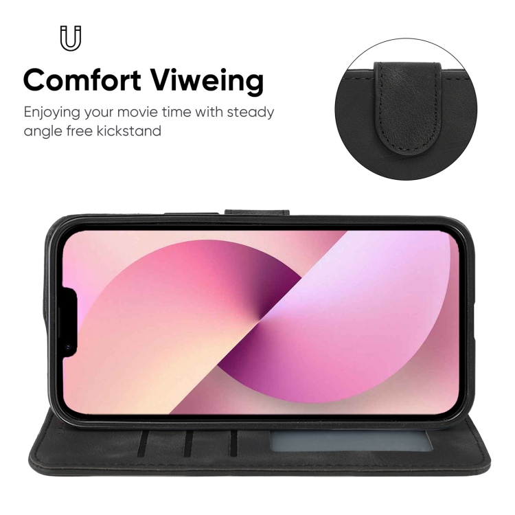 Funda para iPhone 13 Mini Skin Feel Cuero con Líneas Geométricas (Negro)