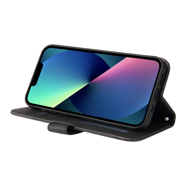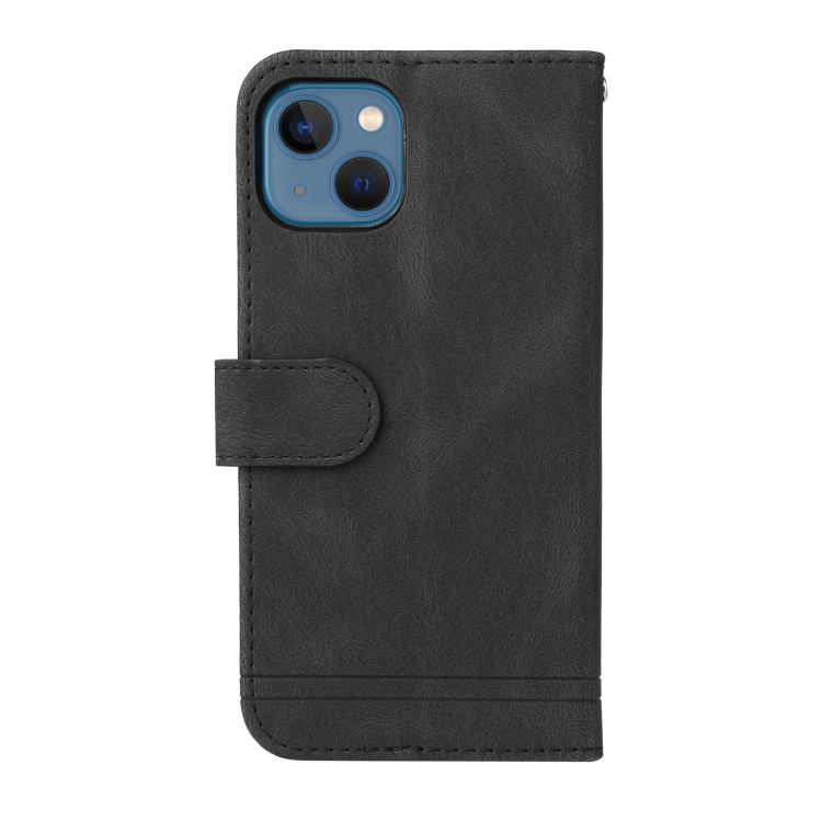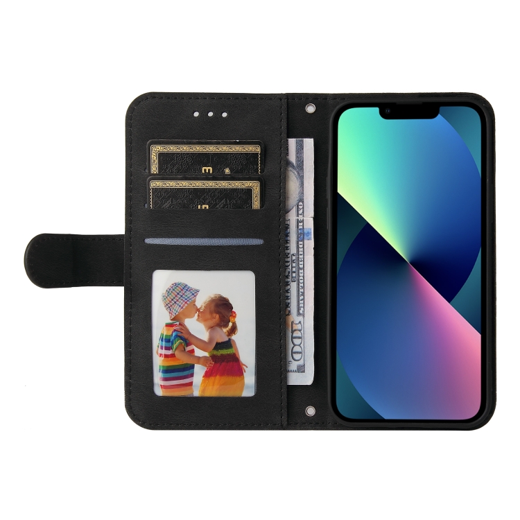 Funda de Cuero para iPhone 13 Mini Skin Feel Life Tree con Botón de Metal, Tapa Horizontal, Soporte, Ranura para Tarjeta, Billetera, Marco de Fotos y Correa (Negro)