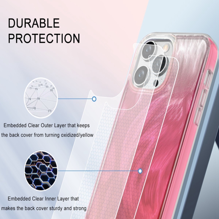 Funda para iPhone 13 Pro 2 en 1 Imd Gradient Feather PC y TPU (Rojo Rosa)