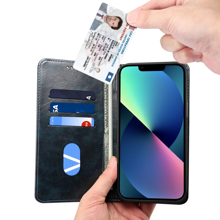 Funda de Cuero para iPhone 13 Pro Baroque Simple con Tapa Horizontal, Soporte y Ranuras para Tarjetas y Billetera (Azul)