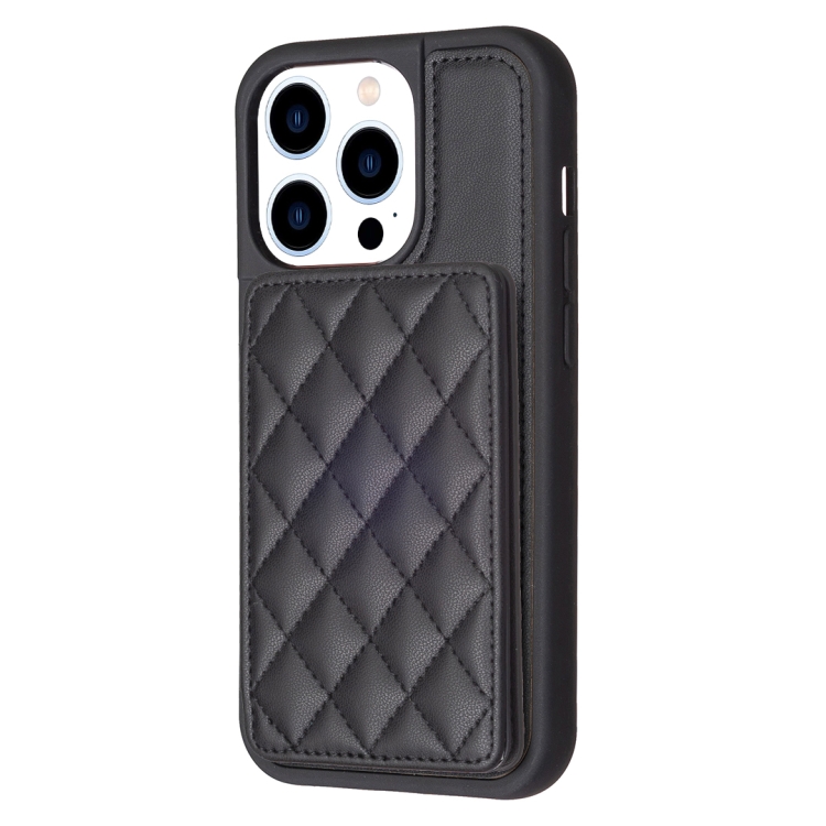 Funda para iPhone 13 Pro Bf25 Square Plaid Card Bag Holder Phone Case (Negro)