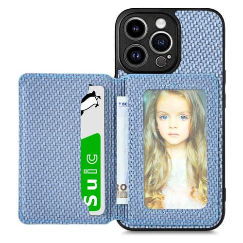 Caja de Teléfono para iPhone 13 Pro con Bolsa de Tarjeta Magnética de Fibra de Carbono (Azul)