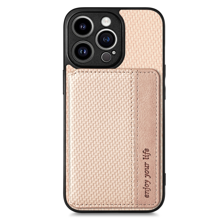 Caja de Teléfono para iPhone 13 Pro con Bolsa de Tarjeta Magnética de Fibra de Carbono (Caqui)