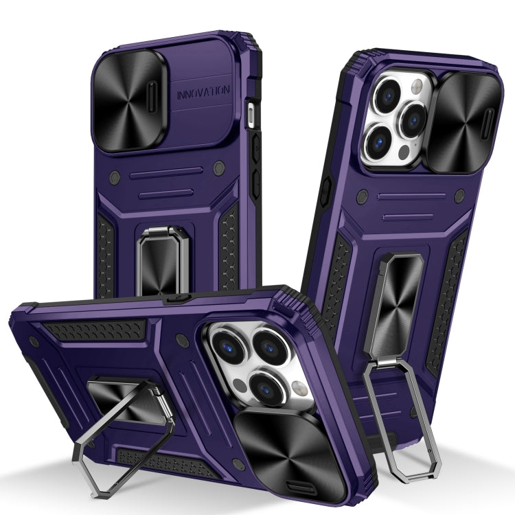 Funda para iPhone 13 Pro Camshield Robot TPU Hybrid PC Protección (Púrpura)
