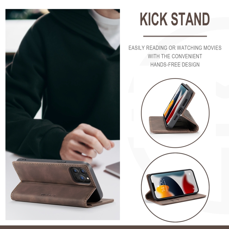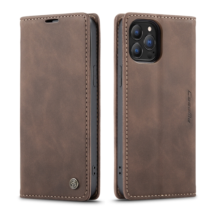 Funda de Cuero Caseme-013 para iPhone 13 Pro con Tapa Horizontal Esmerilada Multifuncional Ranura Tarjeta Soporte Billetera (Café)