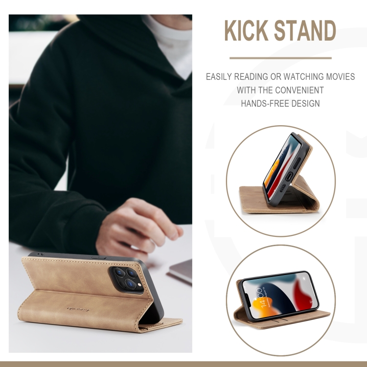 Funda para iPhone 13 Pro Caseme-013 Cuero Tapa Horizontal Multifuncional Ranura Tarjeta Soporte Billetera (Marrón)