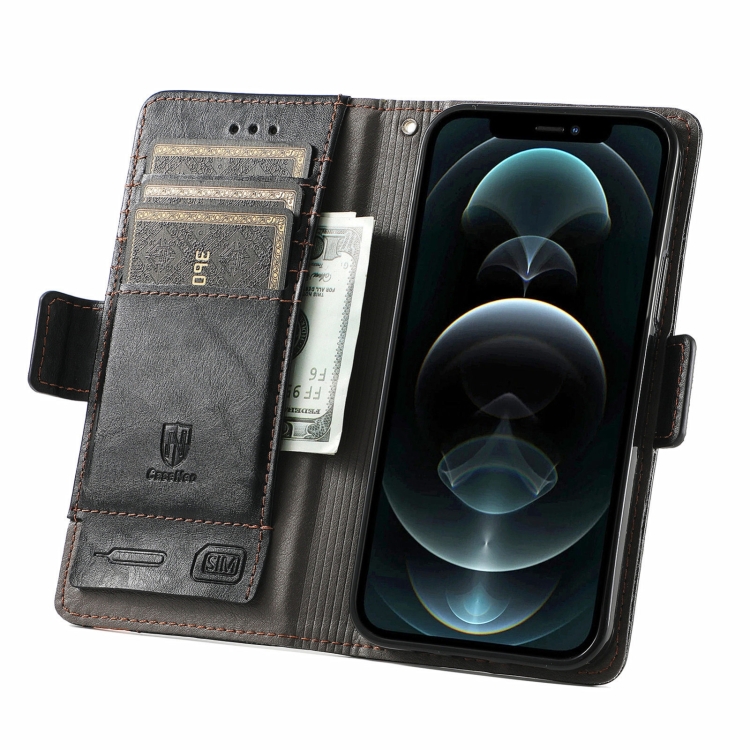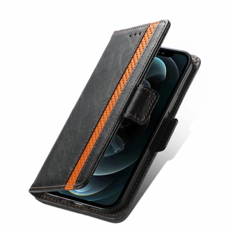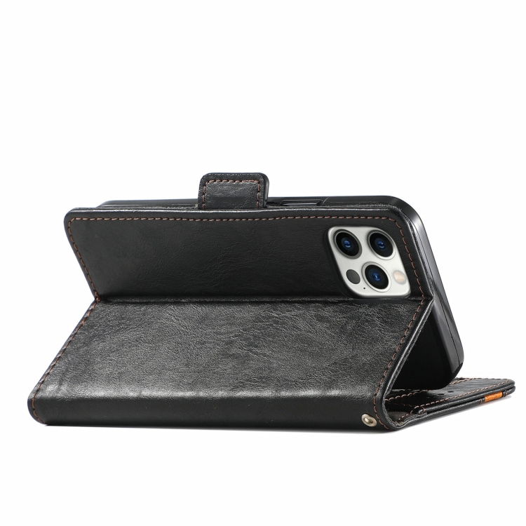Funda para iPhone 13 Pro Caseneo Business Splicing con Soporte y Ranuras para Tarjetas (Negro)