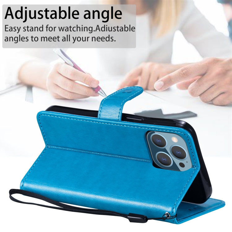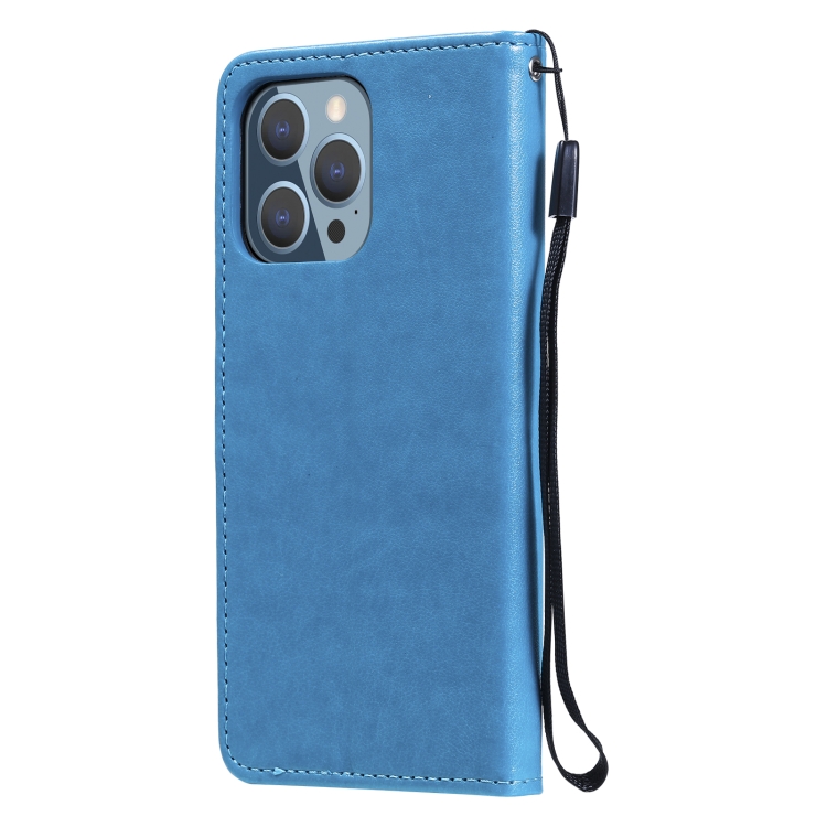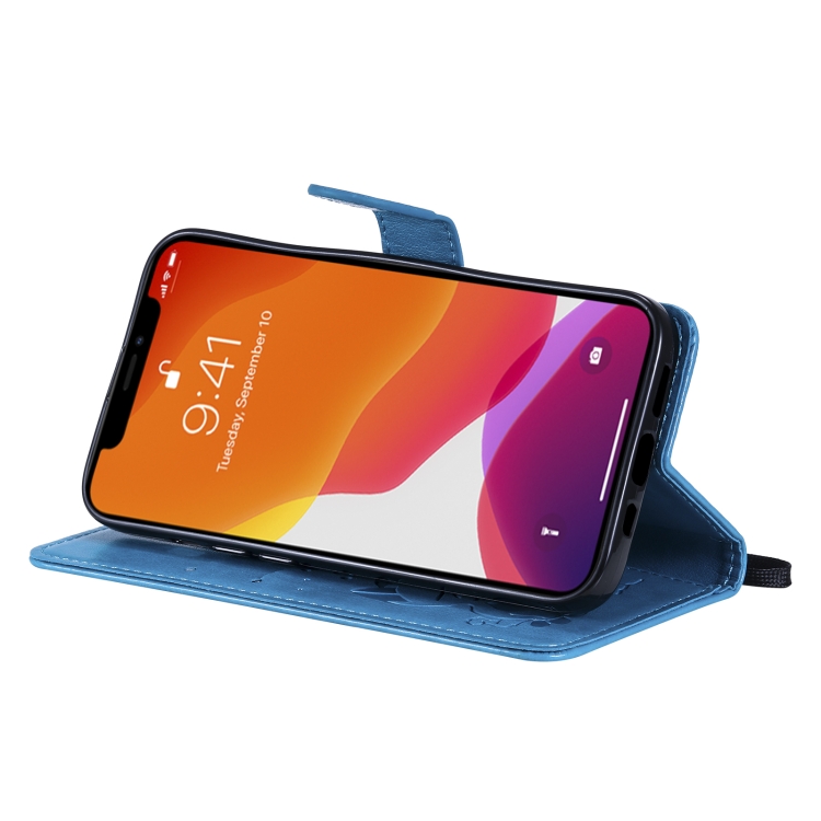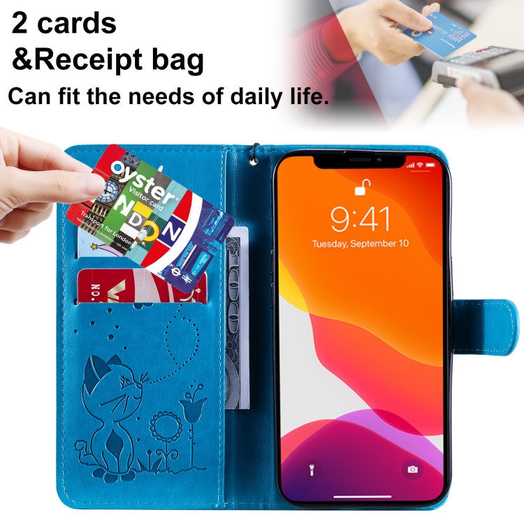 Funda para iPhone 13 Pro Cat Bee Cuero con Tapa Horizontal, Soporte y Ranuras para Tarjetas (Azul)
