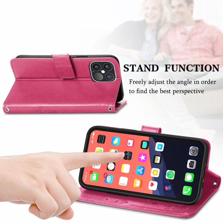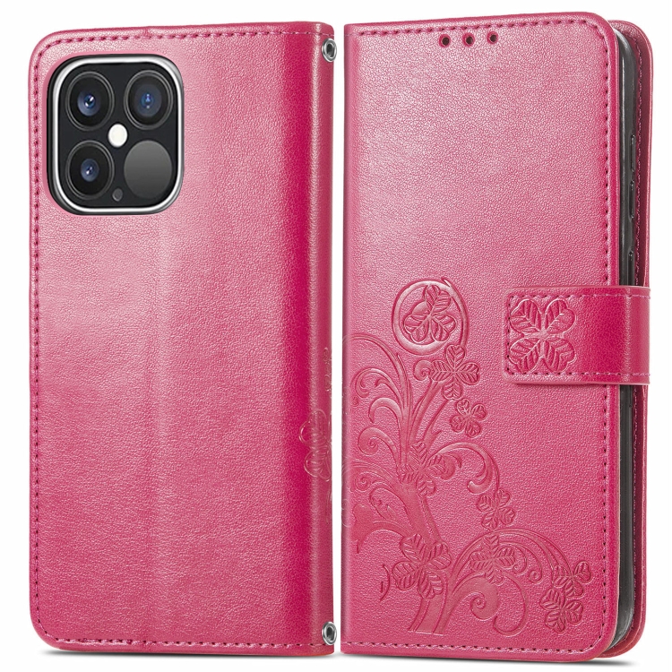 Funda de Cuero para iPhone 13 Pro Cierre de Trébol con Hebilla Ranura para Tarjeta y Soporte (Magenta)