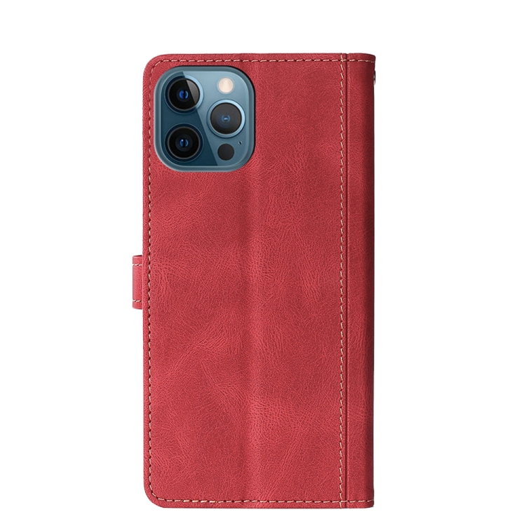 Funda para iPhone 13 Pro Cosido en Piel Cuero PU con Hebilla Magnética, Tapa Horizontal, Soporte y Ranuras para Tarjetas (Rojo)