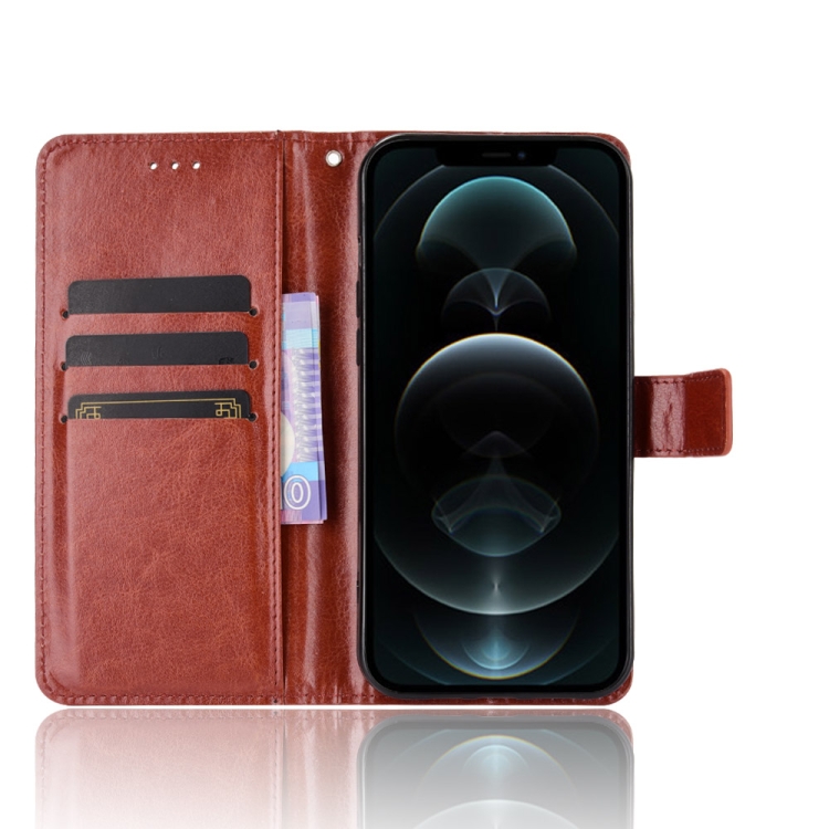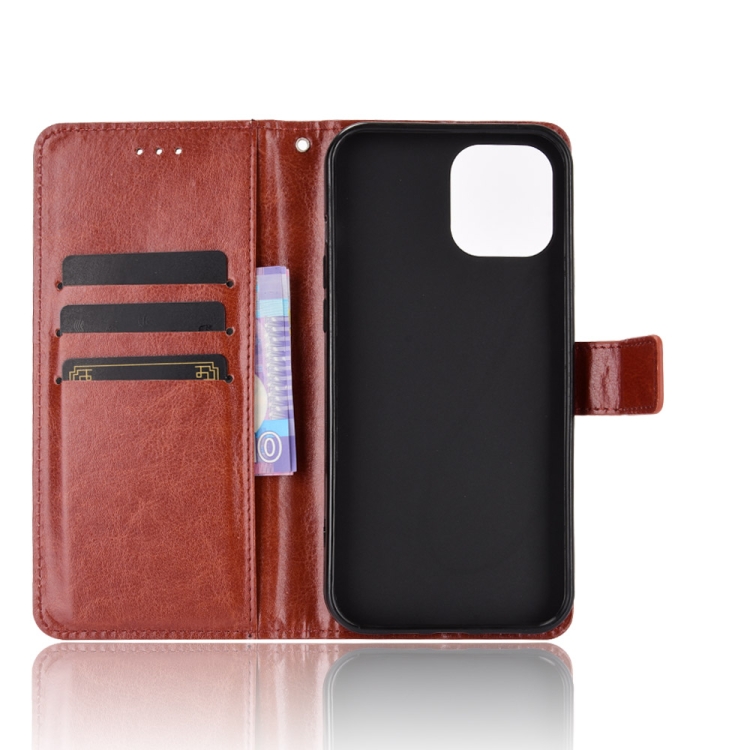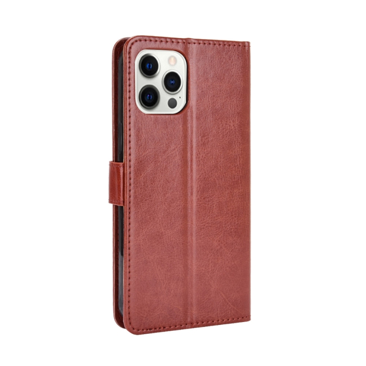 Funda de Cuero para iPhone 13 Pro Crazy Horse Texture con Tapa Horizontal Soporte Ranuras y Cordón (Marrón)