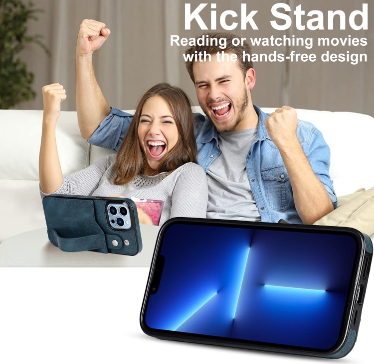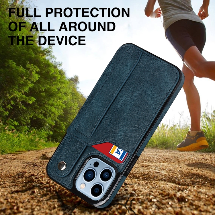 Funda para iPhone 13 Pro Crazy Horse Texture Cuero TPU + PU a Prueba de Golpes con Ranura para Tarjeta y Correa (Azul Zafiro)