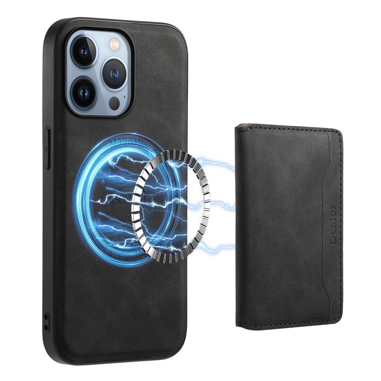 Funda para Teléfono Denior D13 para iPhone 13 Pro con Bolsa para Tarjeta Magsafe de Cuero (Negro)