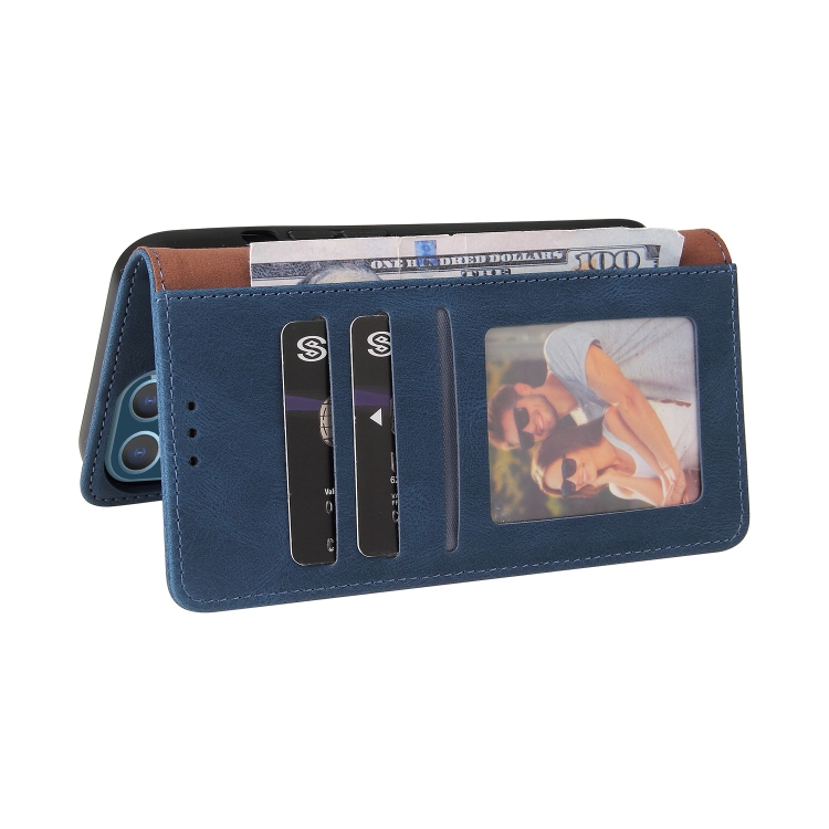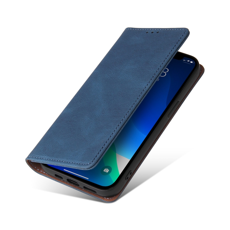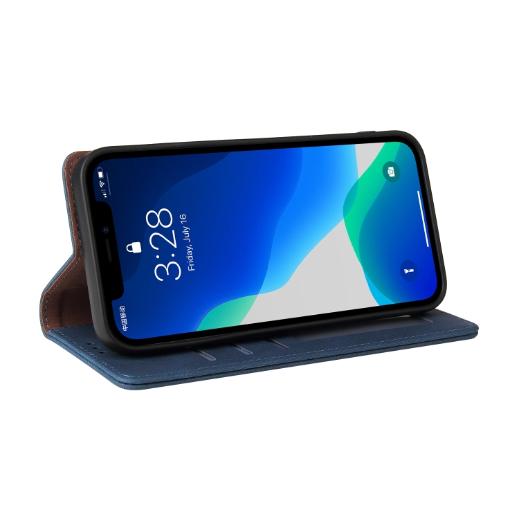 Estuche de Cuero para iPhone 13 Pro con Tapa Horizontal, Cierre de Succión, Soporte, Ranura para Tarjeta y Billetera (Azul)